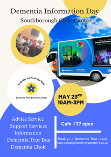 Initially our aim was all about raising awareness and encouraging local businesses to becoe dementia friendly, this all changed following the covid pandemic. Cafes, support groups and choirs previously run by the Alzheimer's society did not re-start. A decision by the society to stop all front line services and move to an information and signposting service left many local residents without this much needed support. The group decided to move into that space. Chris Parker engaged in a programme of serious fundraising and with an amazing group of volunteers established cafes, music groups and a carer support group. Our work continues.